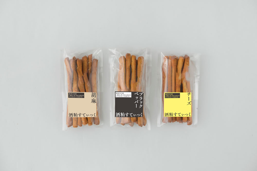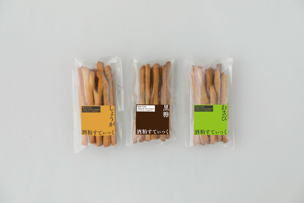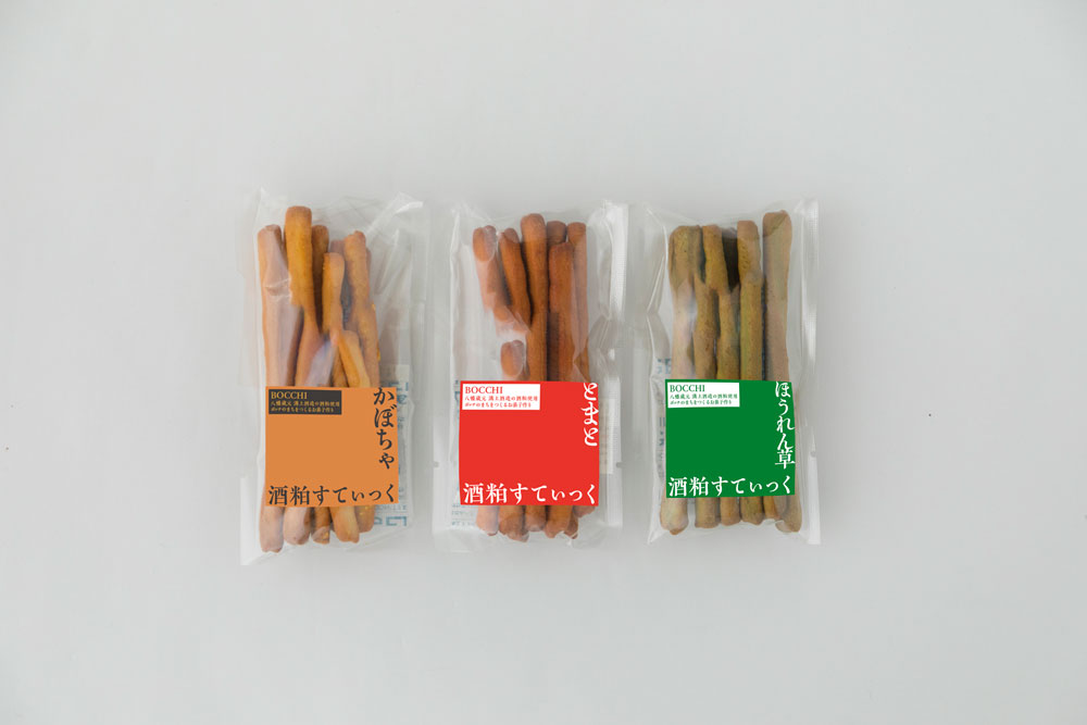 今回、日々てまでは、BOCCHIが作っているたくさんのお菓子の中から「酒かすすてぃっく」をセレクト。北九州の溝上酒造の酒粕を使った香ばしい焼き菓子で、ほんのりとした自然な甘味が魅力です。ちょっぴり塩味をきかせた「おつまみセット」、子どものおやつにもピッタリの「ベジタブルセット」、あっさり和のテイストの「和風セット」から、お好きなものをチョイスしてください。