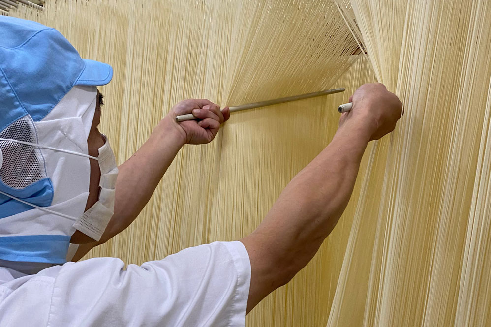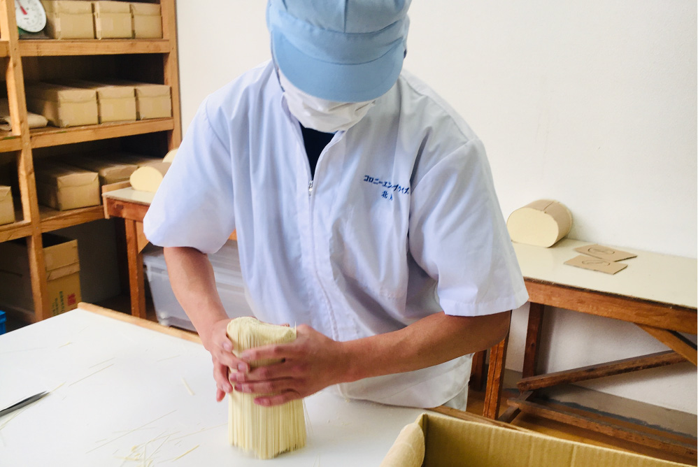 さらに橋本さんは、もう一つ大きな意義があると話します。それは「地域の産業を継承する」こと。このあたりは、日本における手延そうめんの一大産地ですが、他の多くの地域同様、働き手不足に悩んでいます。ここで仕事を続けることが、昔からの手延べの技術を継承することにもつながっています。